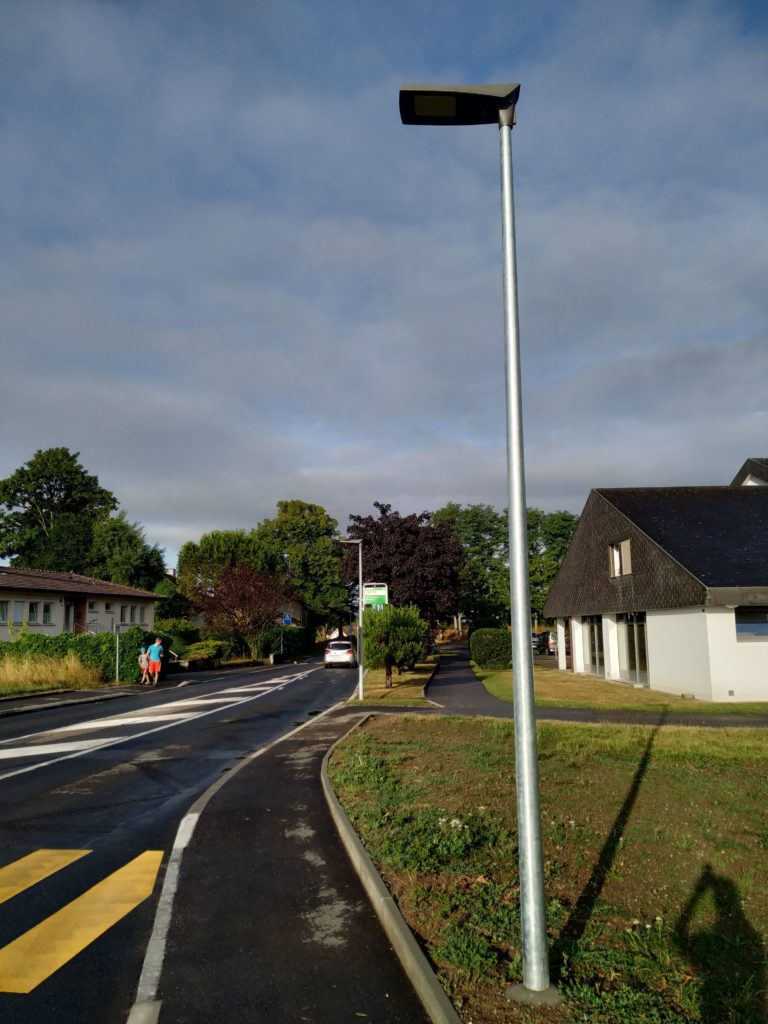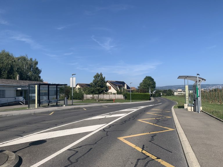 Les aménagements prévus consistent à élargir la chaussée au nord de la route, de manière à modifier la position de l’arrêt. Ces aménagements permettent l’arrêt, de manière prolongée, d’un bus articulé (remise à l’heure). Le rebroussement du bus sera assuré par le giratoire situé 200 m. plus à l’ouest, sur la route de Lully. Cet élargissement nécessite le déplacement de l’éclairage public existant, d’une borne hydrante ainsi que du trottoir.