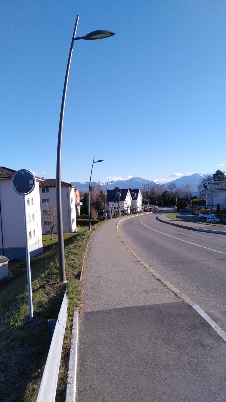 Le projet d’élargissement des trottoirs a été élaboré et financé par Direction Générale de la Mobilité et des Routes (DGMR). En parallèle, un projet communal d’éclairage de cet itinéraire a été élaboré en étroite coordination avec les travaux prévus prévus par les partenaires fédéraux et cantonaux. Il consiste à la mise en place d’un éclairage dans la main courante du garde-corps permettant de réaliser un balisage pour améliorer le cheminement piétons et cyclistes empruntant l’itinéraire du Pont de la Gracieuse. 4 nouveaux candélabres ont également mis en place après le pont, direction lac, côté Est de la chaussée, pour finaliser la liaison mobilité douce jusqu’à la limite de la Commune.