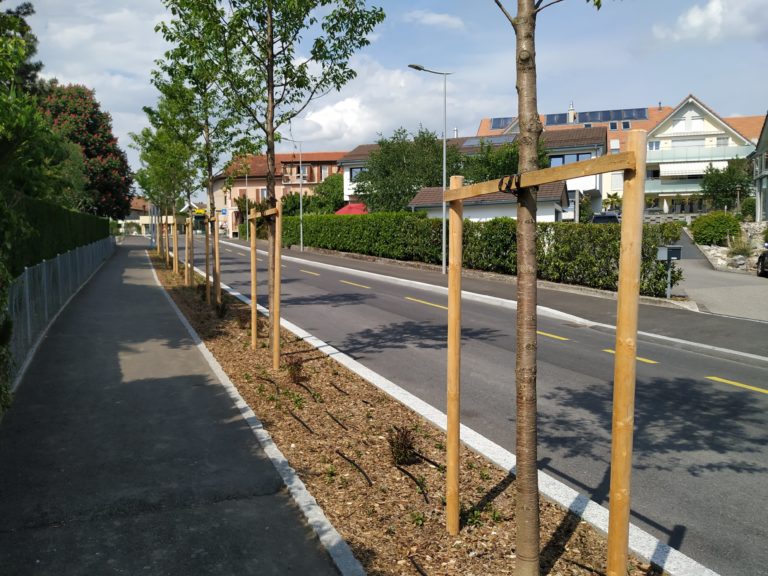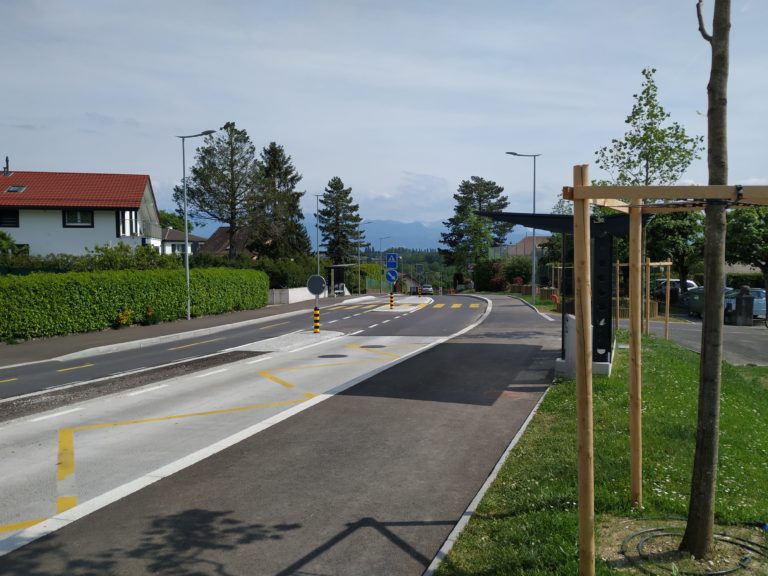 Le projet contient aussi plusieurs éléments qualitatifs rendant les déplacements à pied et à vélo plus confortables, notamment la création d’une allée arborisée entre le chemin du Chaney et celui des Vignes et l’ajout ponctuel de bandes de verdure et de prairies fleuries, mettant en valeur la traversée du village.
