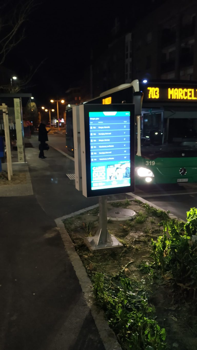 Les différentes bornes qui équiperont les arrêts les plus fréquentés permettront de fournir toutes sortes d’informations utiles aux usagers comme l’arrivée des prochains bus ou l’annonce de perturbations.